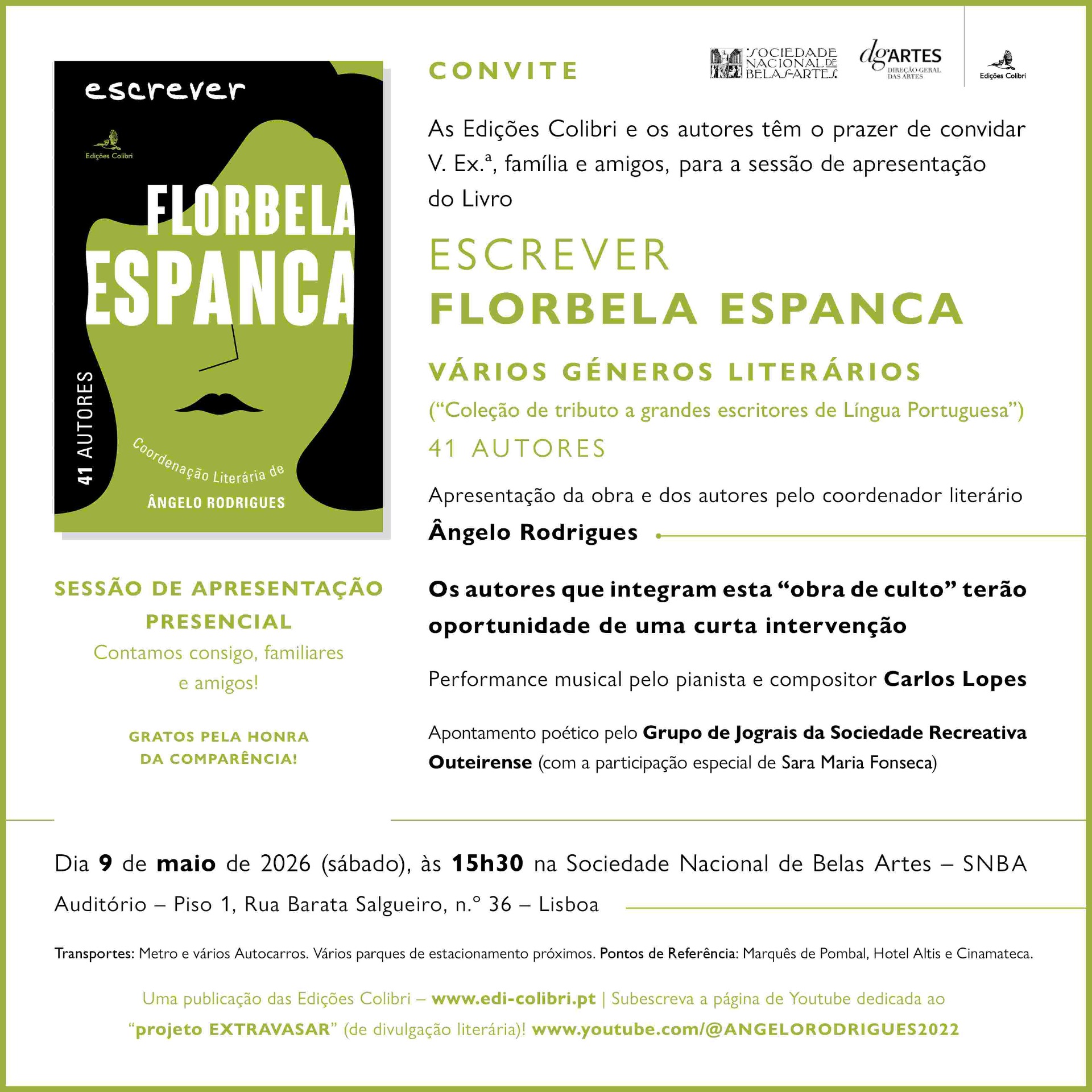EDIÇÕES COLIBRI e os autores têm o prazer de convidar V. Exª, família e amigos,